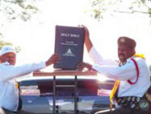 Panamanian church leaders and members received a replica of the multi-language Bible on Dec. 20, soon after the real one made its journey through the bordering country of Costa Rica. The unique book was escorted by a caravan of automobiles, which made their way from the Costa Rican border into the City of Chiriqui in the western part of the country, through Concepcion and onward to the City of David, where hundreds awaited at Cervantes Park.