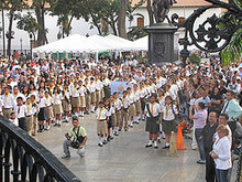 Thousands gathered for special programs throughout the dozens of congregations in Caracas focused on the Bible. More than 2,500 church leaders and church members participated in a historic march which took place from the Madariaga Plaza to the Bolivar Plaza-the main plaza in front of the National assembly, the national capitol, cathedral and government palace. More than 6,000 fliers on the Bible were distributed during the march.