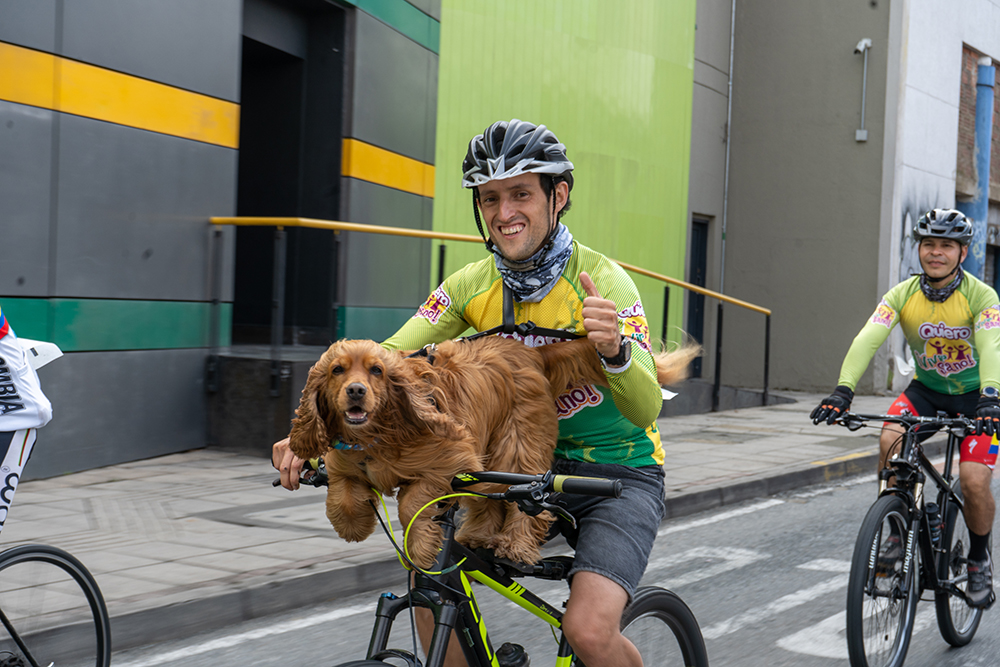 A cyclist belonging to the church’s “I Want to Live Healthy” cycling club, rides through Medellin, Colombia, with his dog on the bike during the club’s tour of the city on Nov. 14, 2022. More 80 cyclists young and old joined the initiative which promotes a balanced healthy lifestyle. [Photo: Hope Media Colombia]