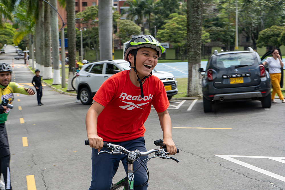 A teenager laughs as he rides with the group through the city of Medellin, Colombia. [Photo: Hope Media Colombia]