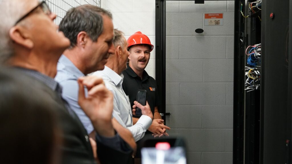 Church leaders inspect the servers at their new location. [Photo: Adventist Record]
