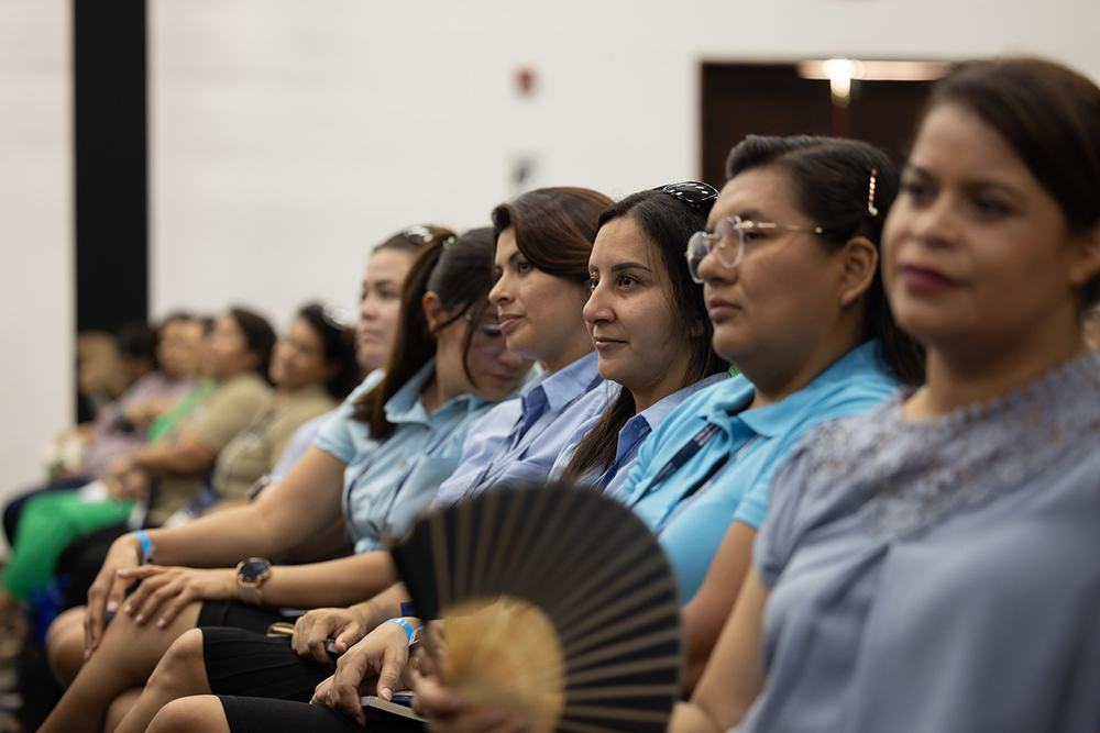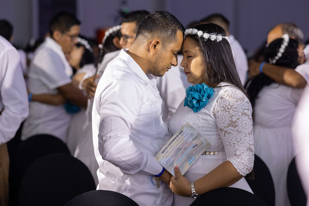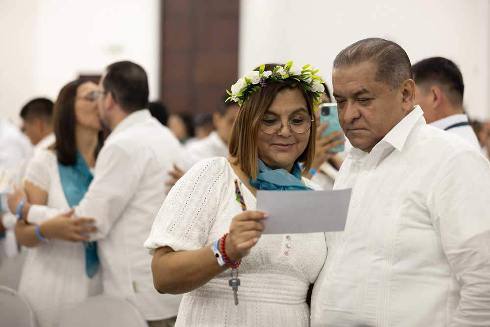 Jonathan Peñate, 25, and Janeyri Martínez, 24, never thought they would walk down the isle again. But they found themselves at this moment–she wearing her white gown and veil, he, wearing his suit–much like they had done a year and a half ago with family and friends in their home country of El Salvador. This time, they walked down the long isle in front of more than 600 pastoral couples just like them to take part in a marriage vow renewal ceremony. The event was the crowning moment as the Inter-American Division (IAD) was concluding its third and final ministerial retreat in Acajutla, El Salvador, on Sep. 18, 2024.