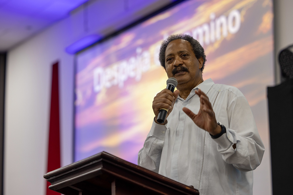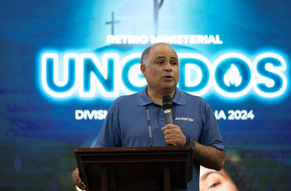 Pastos Josney Rodríguez, ministerial association secretary of the IAD, addresses pastoral delegates during a devotional message on Sep. 18, 2024. [Photo: Daniel Gallardo/IAD]