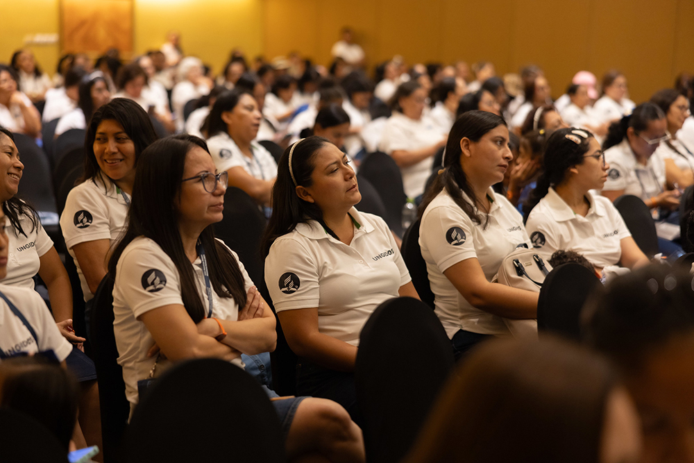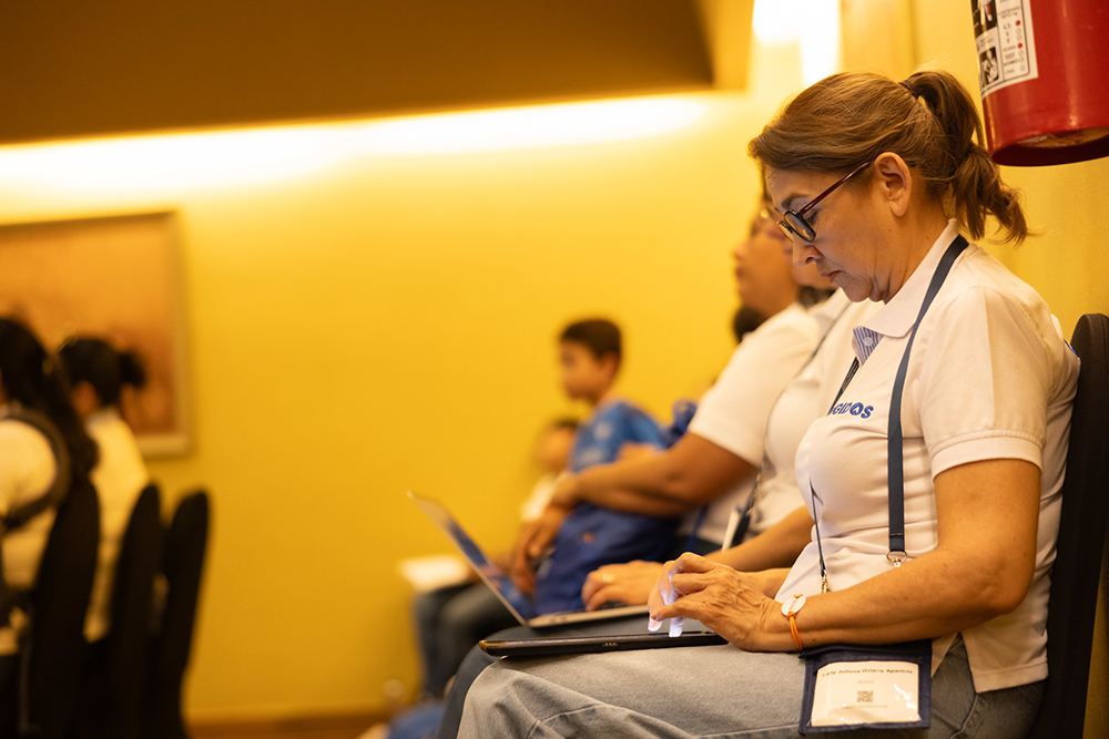 Lady Julissa Oviedo, women’s ministries director and children’s and adolescent ministries in the South Pacific Mission in South Colombia Union, takes notes during Pastor Kent’s message and says the church needs to do more to support families who are dealing with children who have left the church. [Photo: Daniel Gallardo/IAD]