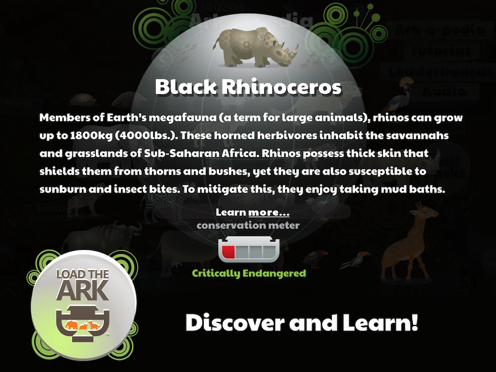 Une page consacrée à l’une des espèces qui peut être téléversée dans l’arche. [Une capture d’écran de DayStar Media Labs]